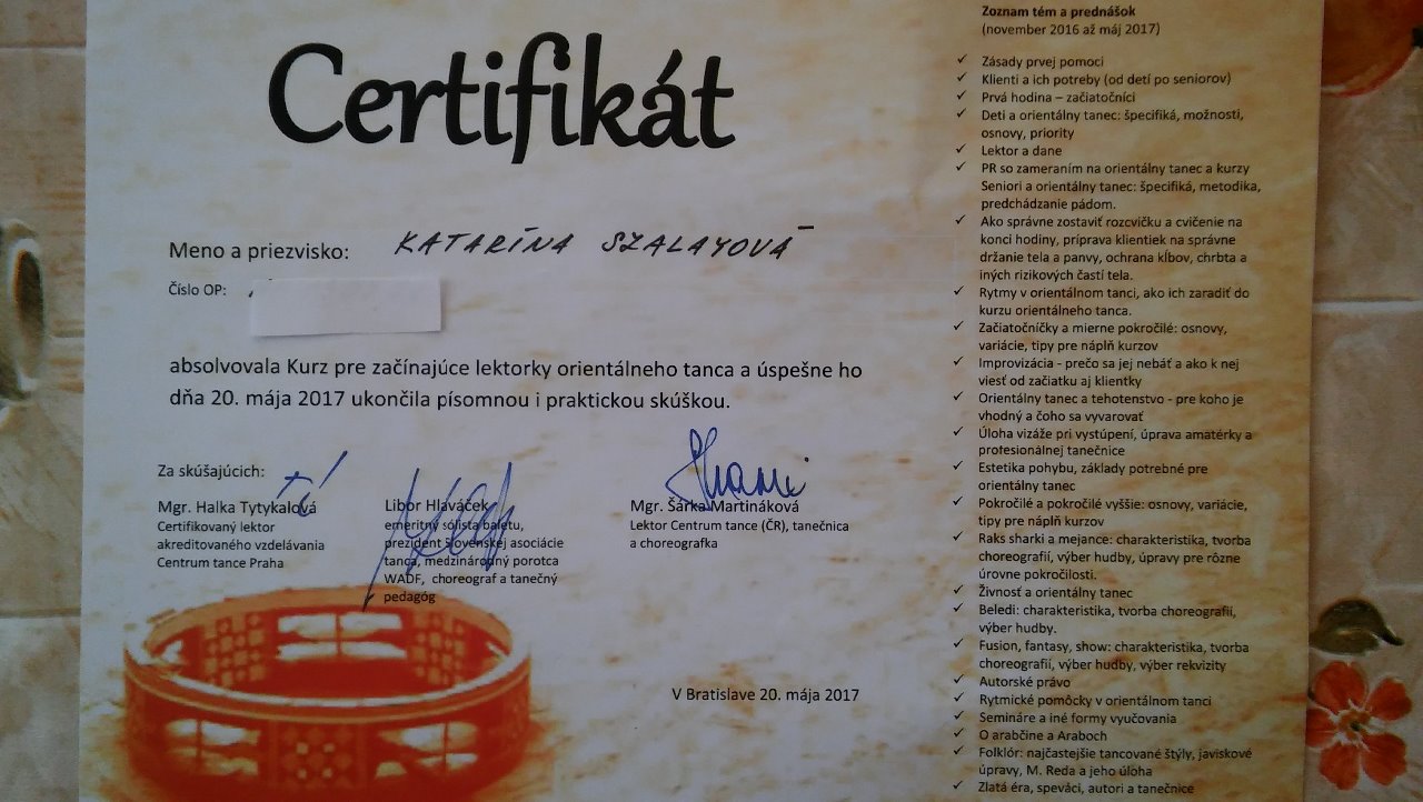 Chodila na kurzy a súkromné hodiny do Bratislavy. Odvtedy už absolvovala viacero workshopov so zahraničnými, medzinárodne uznávanými tanečníkmi: